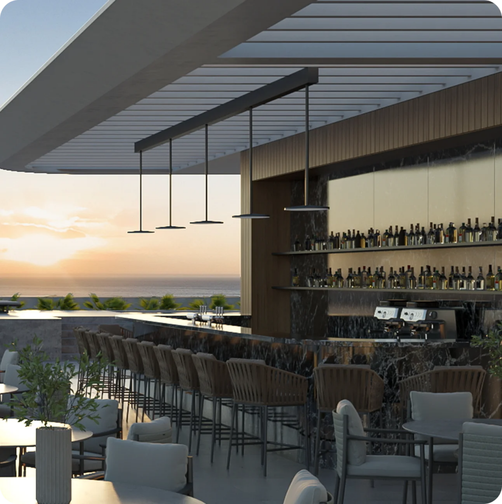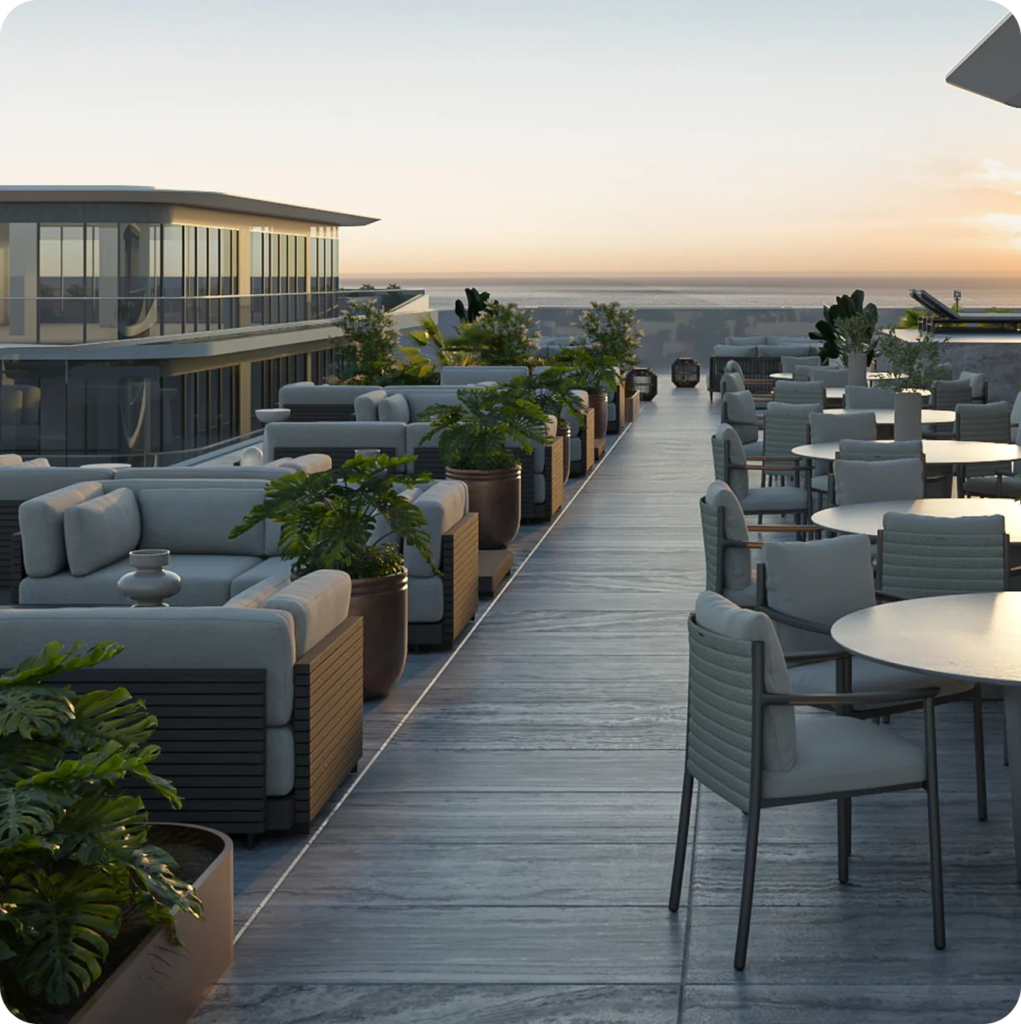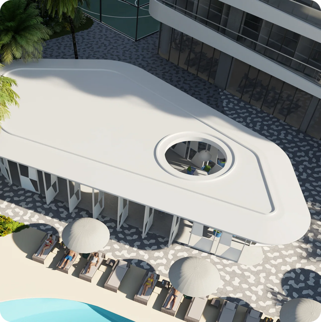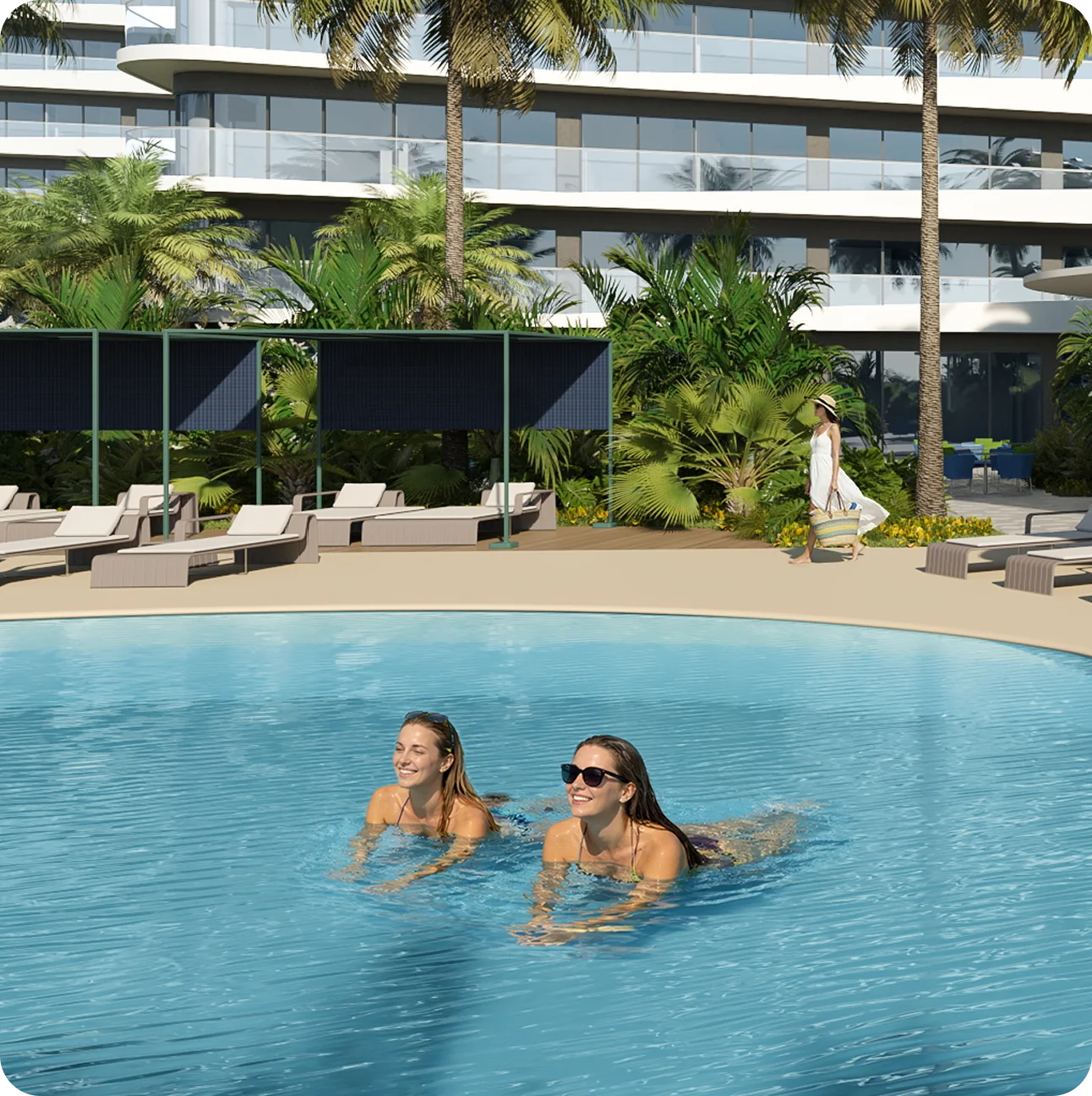 Residents enjoy premium amenities designed for all lifestyles. These include a main pool, kids pool, gym, multi-use court, and family grill areas. Additionally, the rooftop experience features a sky bar, infinity pool, DJ lounge, party deck, and speakeasy, delivering a true resort-style environment.